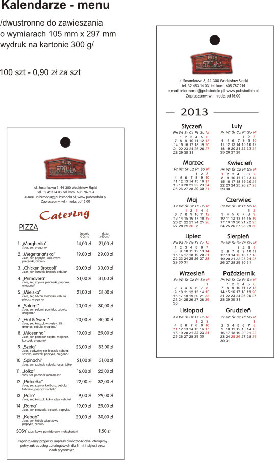Kalendarze - menu